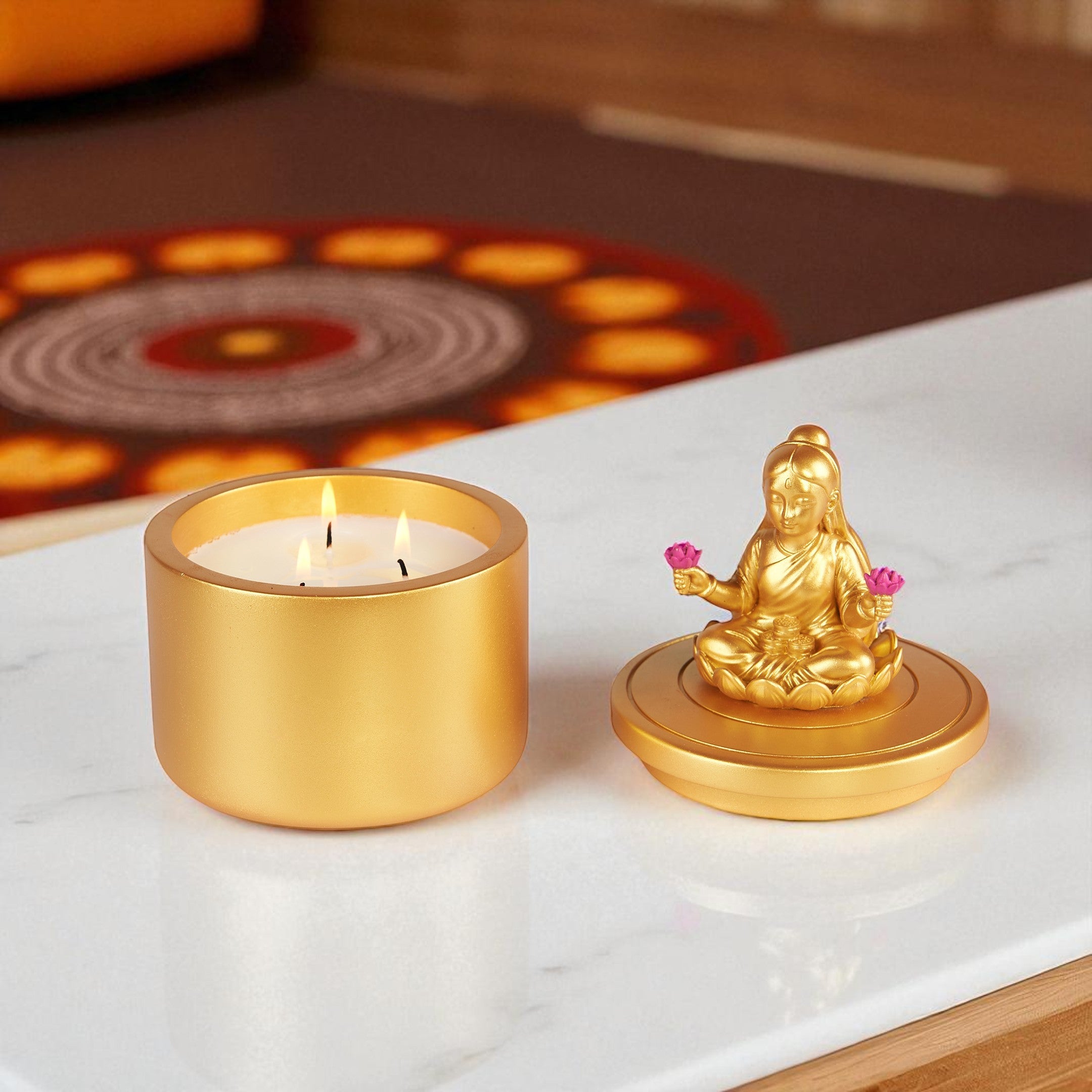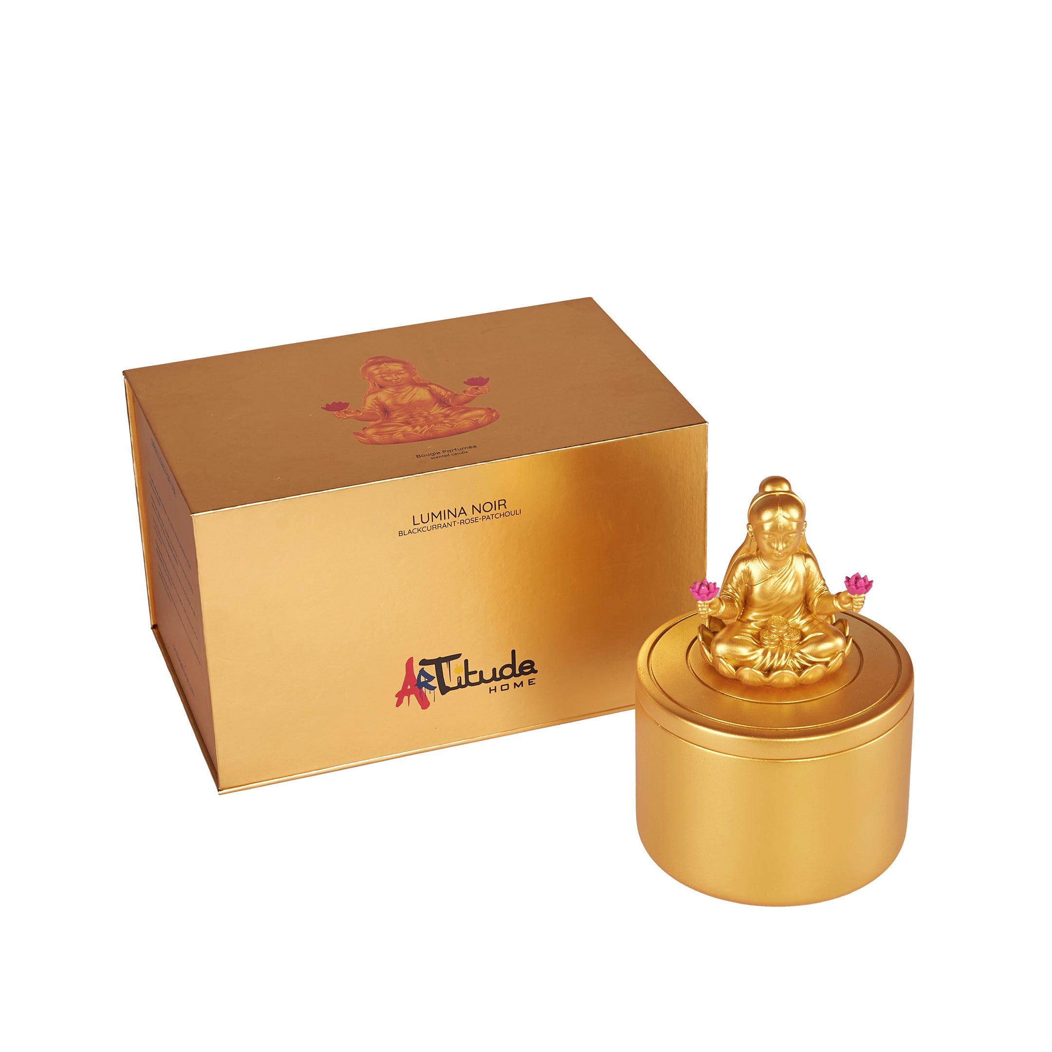 A luminous blend of grace and mystery. Lumina Noir channels the divine glow of Lakshmi through golden notes and soft floral depths. Let its radiant flame invite abundance, clarity, and feminine strength into your space.